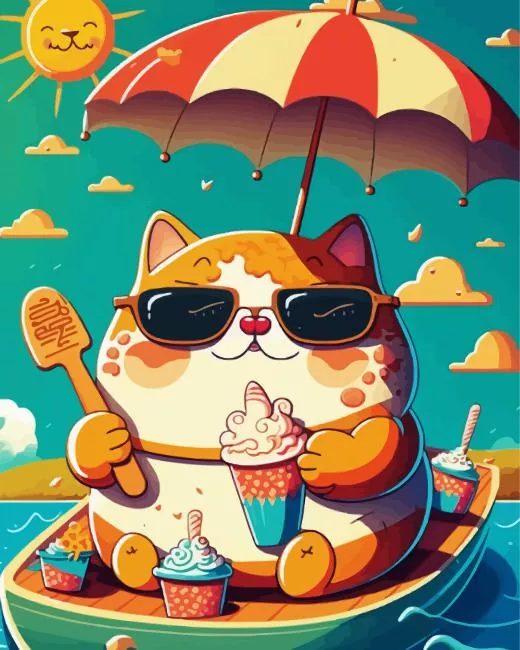 Cartoon Cat Eating Ice Cream Diamond Painting