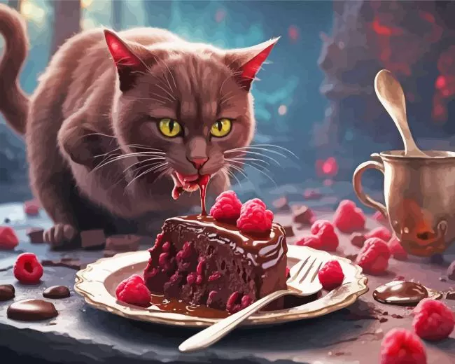 Cat Eating Cake Diamond Painting