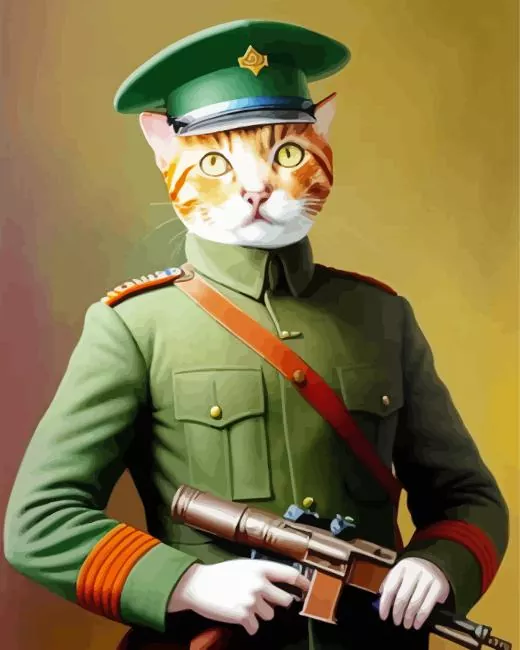 Cat In Military Uniform Diamond Painting